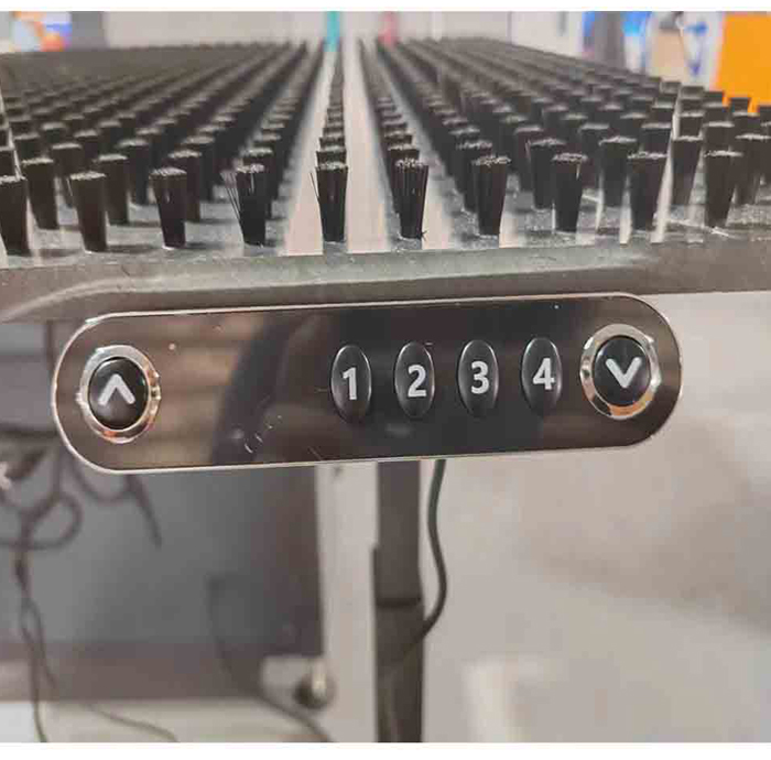 壓鉚機(jī)配套操作臺(tái),適合大尺寸板材的壓鉚工作。升降臺(tái)升降高度69-115cm,臺(tái)面尺寸:長1200mm,寬700mm。4個(gè)高度可記憶設(shè)置。操作便捷,節(jié)省人工。臺(tái)面表面均勻分布高密度毛刷,避免板材表面移動(dòng)過程中造成刮痕。